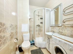 Удобная планировка, рациональная планировка. Просторная кухня-гостиная правильной формы с выходом на большую лоджию 6 м2. В коридоре установлен вместительный шкаф купе с зеркальными дверьми. В совмещённом санузле есть место для стиральной машины.