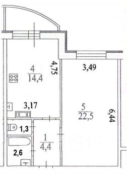 Просторная кухня-гостиная 14.4 м² с выходом на застекленный балкон.