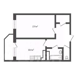 Удобная планировка квартиры. Большая комната правильной формы 18 м2, кухня 10,4 м2 с выходом на застеклённую лоджию. В коридоре вместительная гардеробная (кладовка), раздельный санузел.