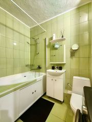 Удобная, рациональная планировка квартиры. Реально большая комната правильной формы 20,1 м2 с выходом на застеклённую лоджию. В коридоре в нишу установлен встроенный шкаф-купе, в просторном совмещённом санузле установлена полноценная ванна, стиральная машина.