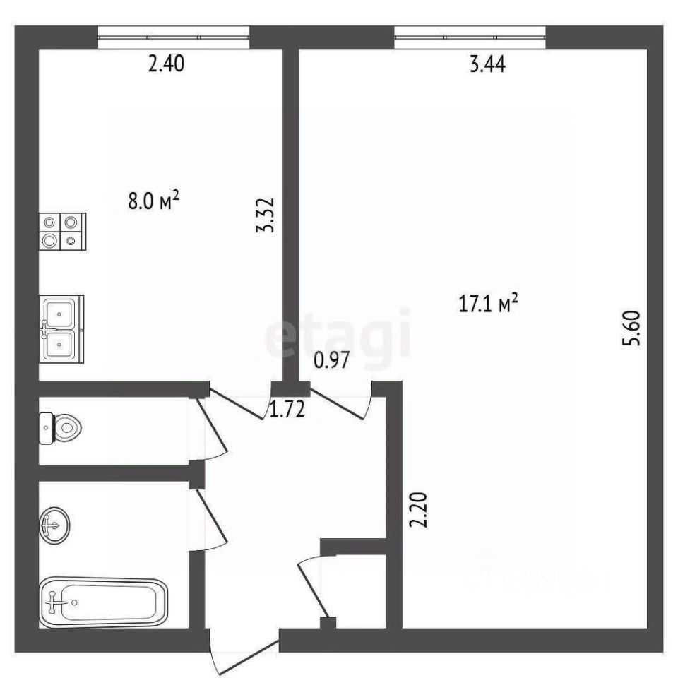 Общая площадь — 32.1 ;