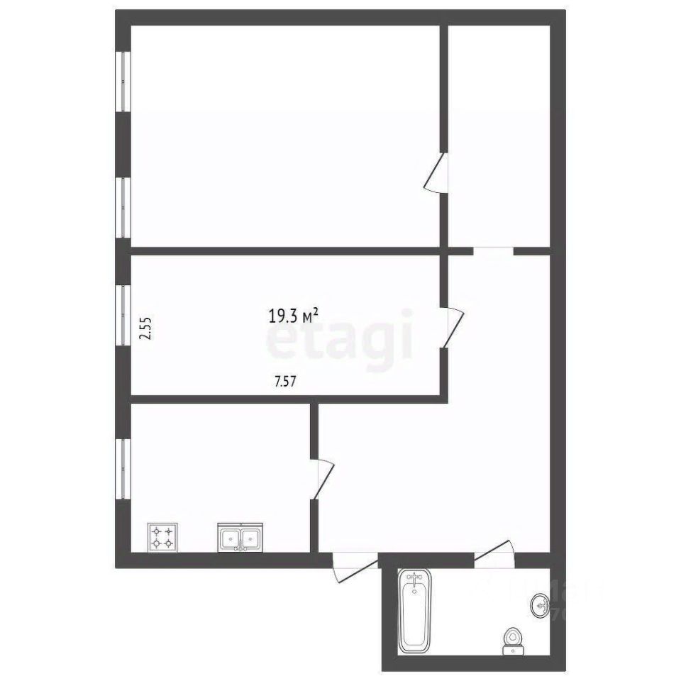 Просторная, с высокими потолками 2,9 м (19,3 м2)