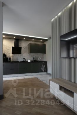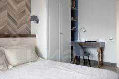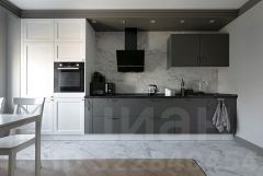 Квартира оборудована мебелью со встроенной техникой по индивидуальному проекту (фасады МДФ эмаль). Имеется просторная гардеробная.