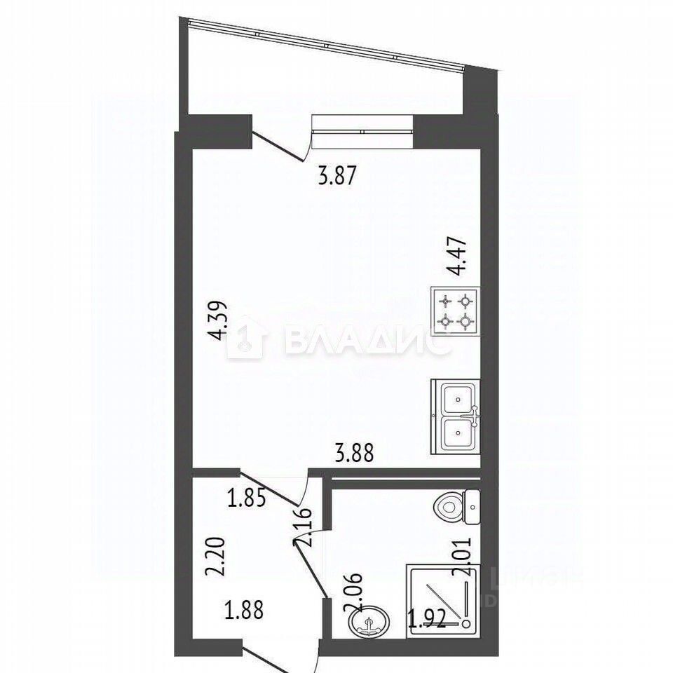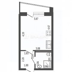 + общая площадь 25.2 кв.м., просторная комната 17.3 кв.м.