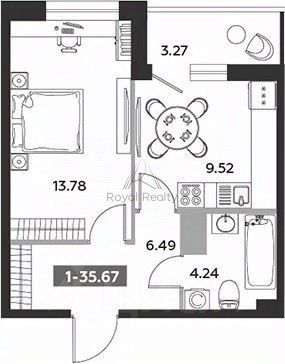 Предлагаем вашему вниманию однокомнатную квартиру площадью 34.1 м² с черновой отделкой, расположенную на 7 этаже современного жилого комплекса "Аквилон Zalive"