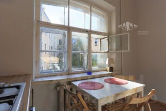 Из парадной можно выйти прямо на набережную Невы, либо через двор - в старинный, мощеный брусчаткой Тучков переулок (свою квартиру здесь Анна Ахматова ласково называла "на Тучке").