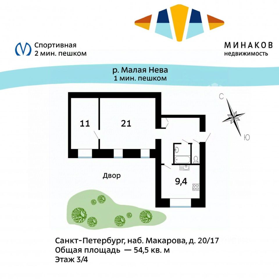 Один взрослый собственник. Прямая продажа. Полное сопровождение сделки компанией Минаков недвижимость.