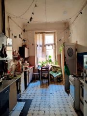 Наши плюсы это - место, размер, высота потолка, два входа и две мокрые точки.Квартира коммунальная, поэтому обращайте внимание не на ремонт, а на интересную конфигурацию и потенциал.