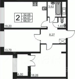 ПРОСТОРНАЯ кухня 19.2м², комната 13.8м², комната 18.3м² с выходом на балкон. ФУНКЦИОНАЛЬНАЯ прихожая.