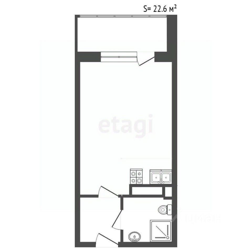Продается комфортабельная студия площадью 22.1 кв.м с застекленной лоджией 3.8 кв.м в новом доме.