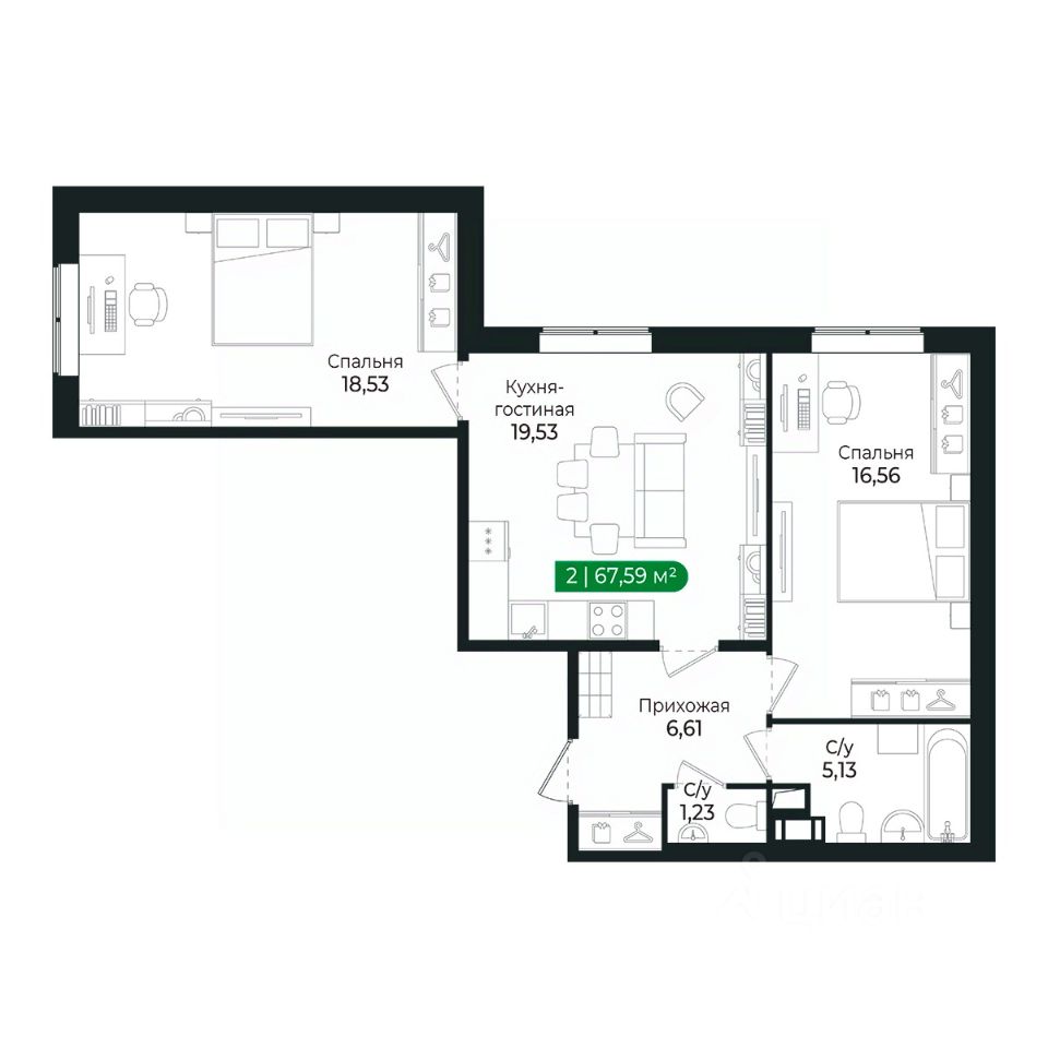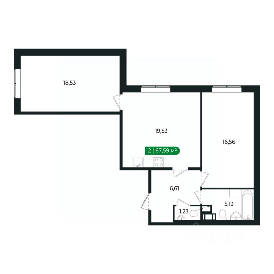 Напрямую продаётся 2 комнатная квартира 75 на 1 этаже (из 8) общей площадью 67,59 м2 в III очереди в жилом комплексе Сертолово Парк от застройщика ГК Алгоритм.