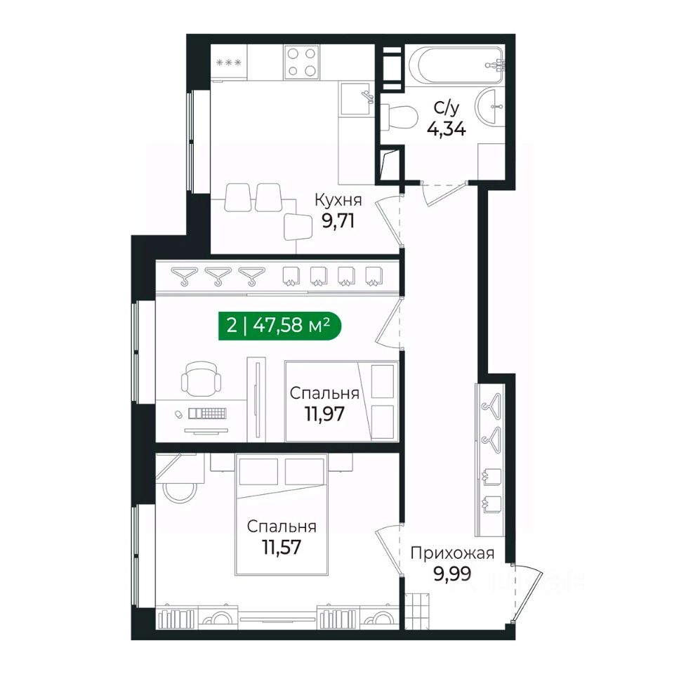 Наличие двух отдельных комнат позволяет обустроить спальню, гостиную или детскую комнату.