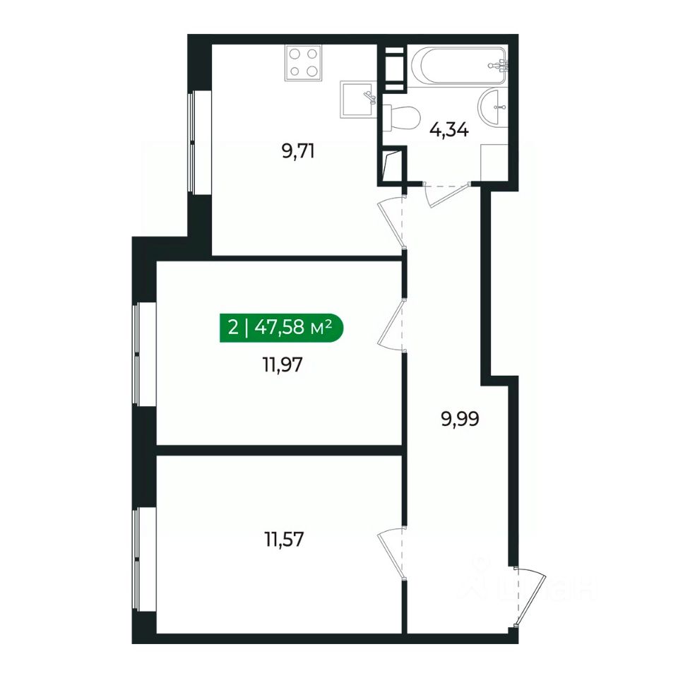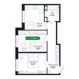 Напрямую продаётся 2 комнатная квартира 77 на 1 этаже (из 8) общей площадью 47,58 м2 в III очереди в жилом комплексе Сертолово Парк от застройщика ГК Алгоритм.