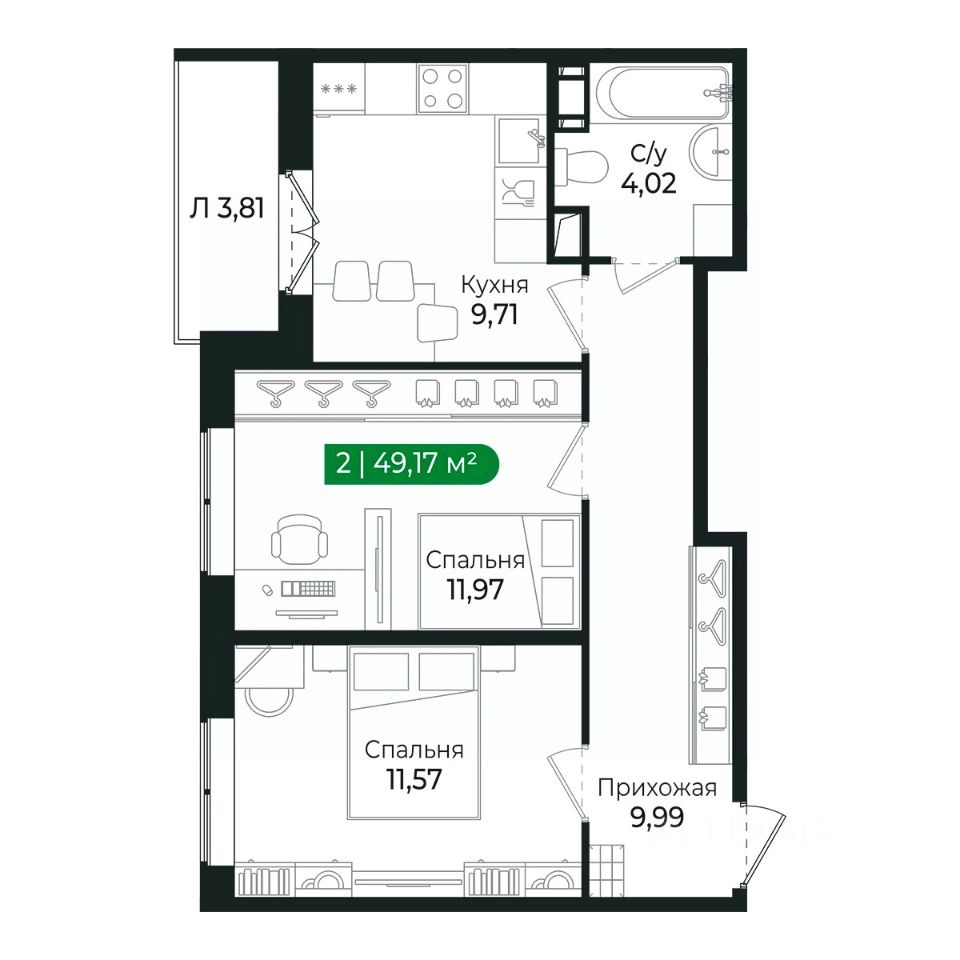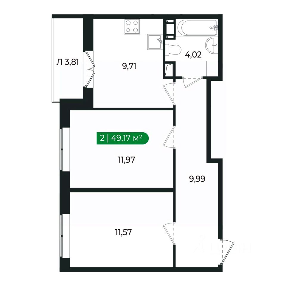 Напрямую продаётся 2 комнатная квартира 91 на 3 этаже (из 8) общей площадью 49,17 м2 в III очереди в жилом комплексе Сертолово Парк от застройщика ГК Алгоритм.