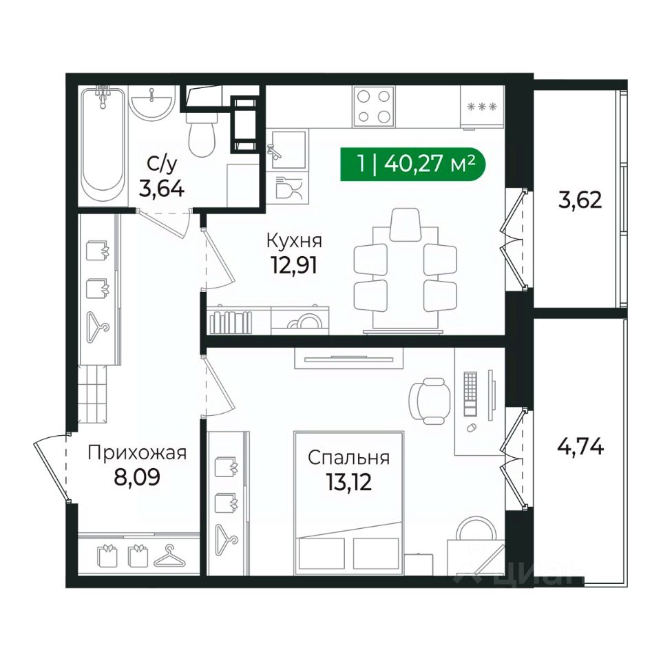 Напрямую продаётся 1 комнатная квартира 94 на 3 этаже (из 8) общей площадью 40,27 м2 в III очереди в жилом комплексе Сертолово Парк от застройщика ГК Алгоритм.