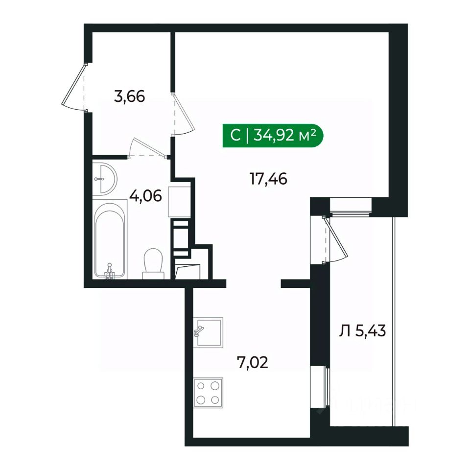 Напрямую продаётся квартира -студия 95 на 4 этаже (из 8) общей площадью 34,92 м2 в III очереди в жилом комплексе Сертолово Парк от застройщика ГК Алгоритм.