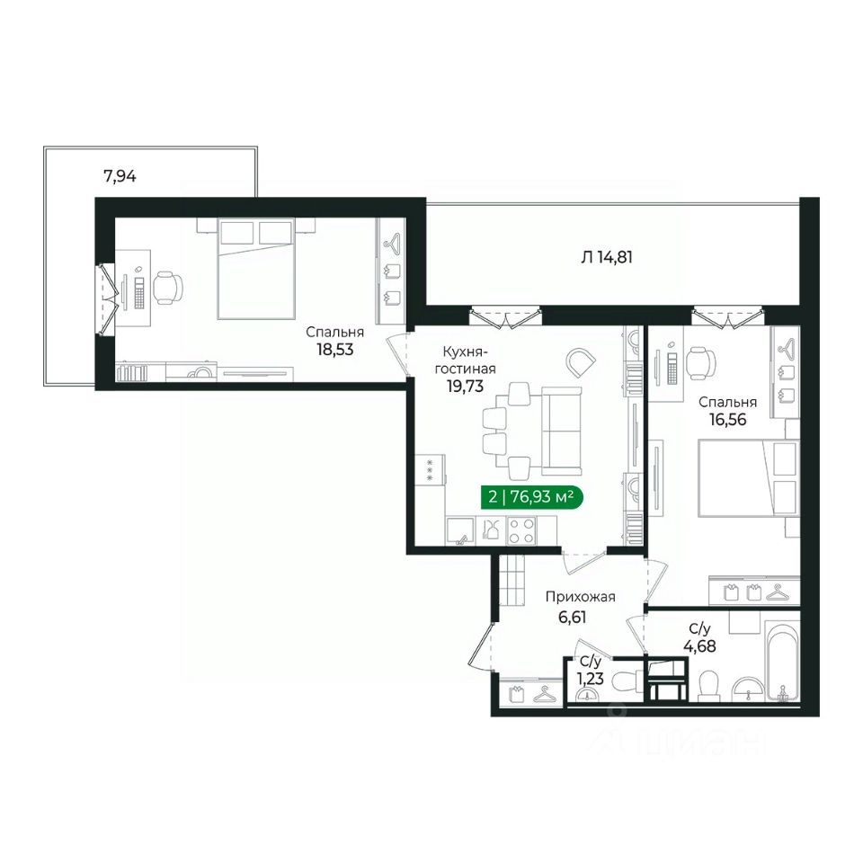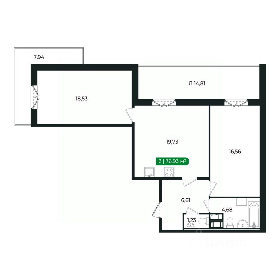 Напрямую продаётся 2 комнатная квартира 110 на 6 этаже (из 8) общей площадью 76,93 м2 в III очереди в жилом комплексе Сертолово Парк от застройщика ГК Алгоритм.