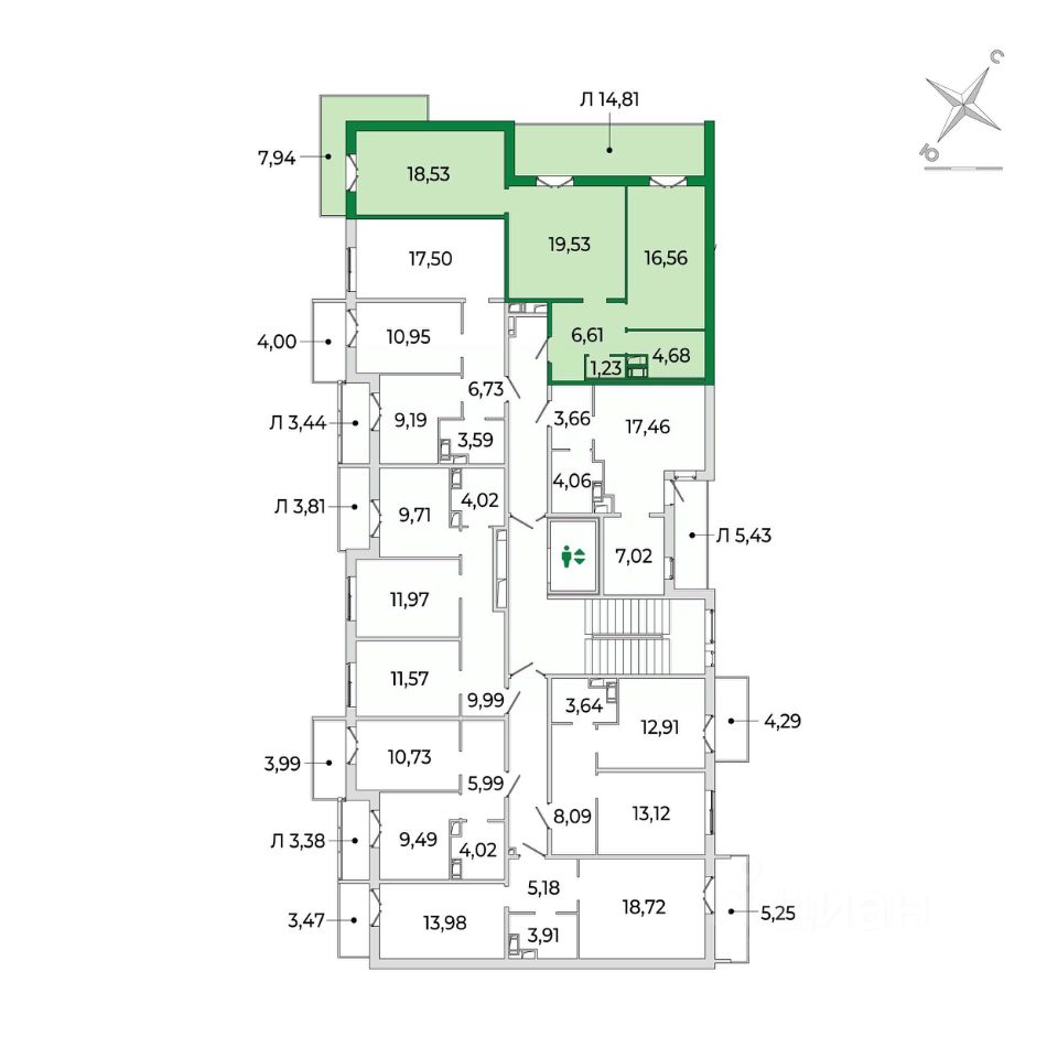Кухня большого размера и правильной формы. Санузел раздельный.