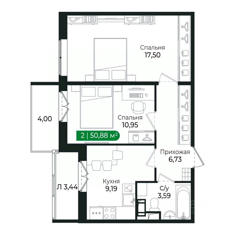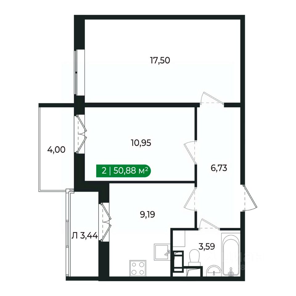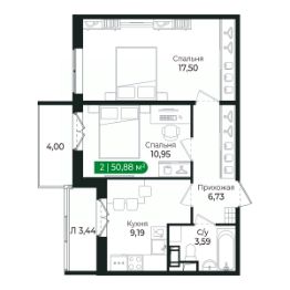 Напрямую продаётся 2 комнатная квартира 111 на 6 этаже (из 8) общей площадью 50,88 м2 в III очереди в жилом комплексе Сертолово Парк от застройщика ГК Алгоритм.