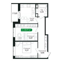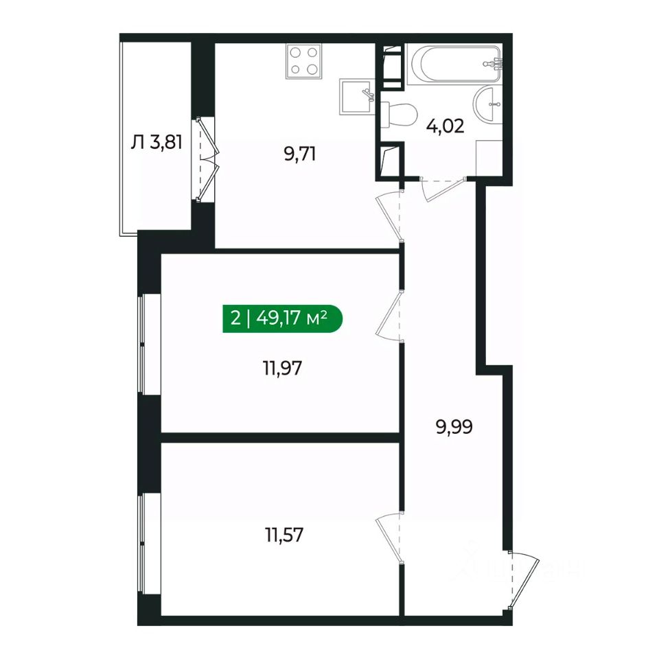 Напрямую продаётся 2 комнатная квартира 112 на 6 этаже (из 8) общей площадью 49,17 м2 в III очереди в жилом комплексе Сертолово Парк от застройщика ГК Алгоритм.