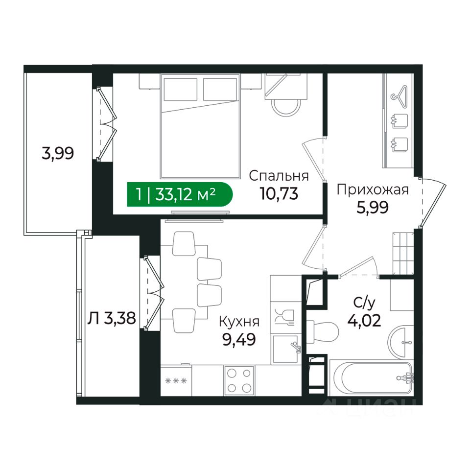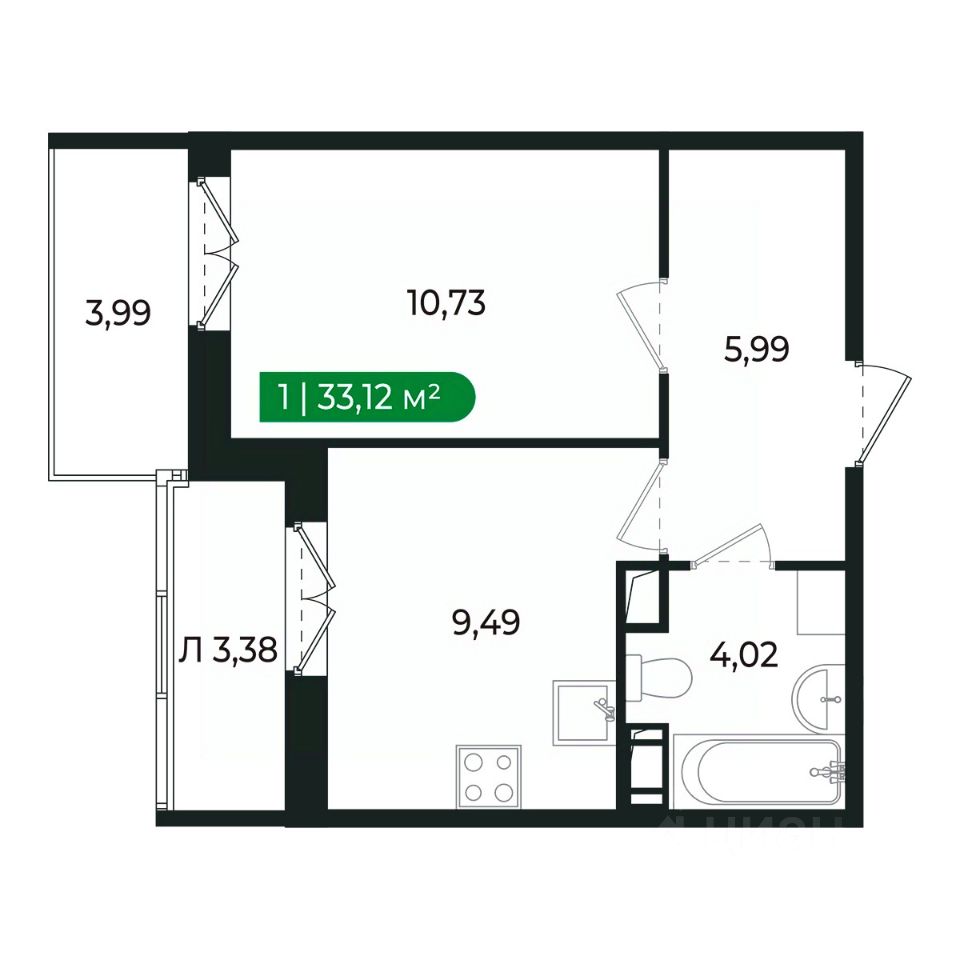 Напрямую продаётся 1 комнатная квартира 113 на 6 этаже (из 8) общей площадью 33,12 м2 в III очереди в жилом комплексе Сертолово Парк от застройщика ГК Алгоритм.