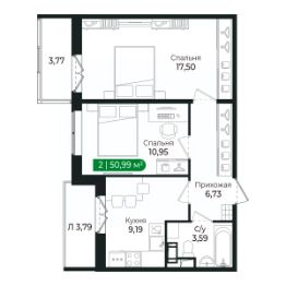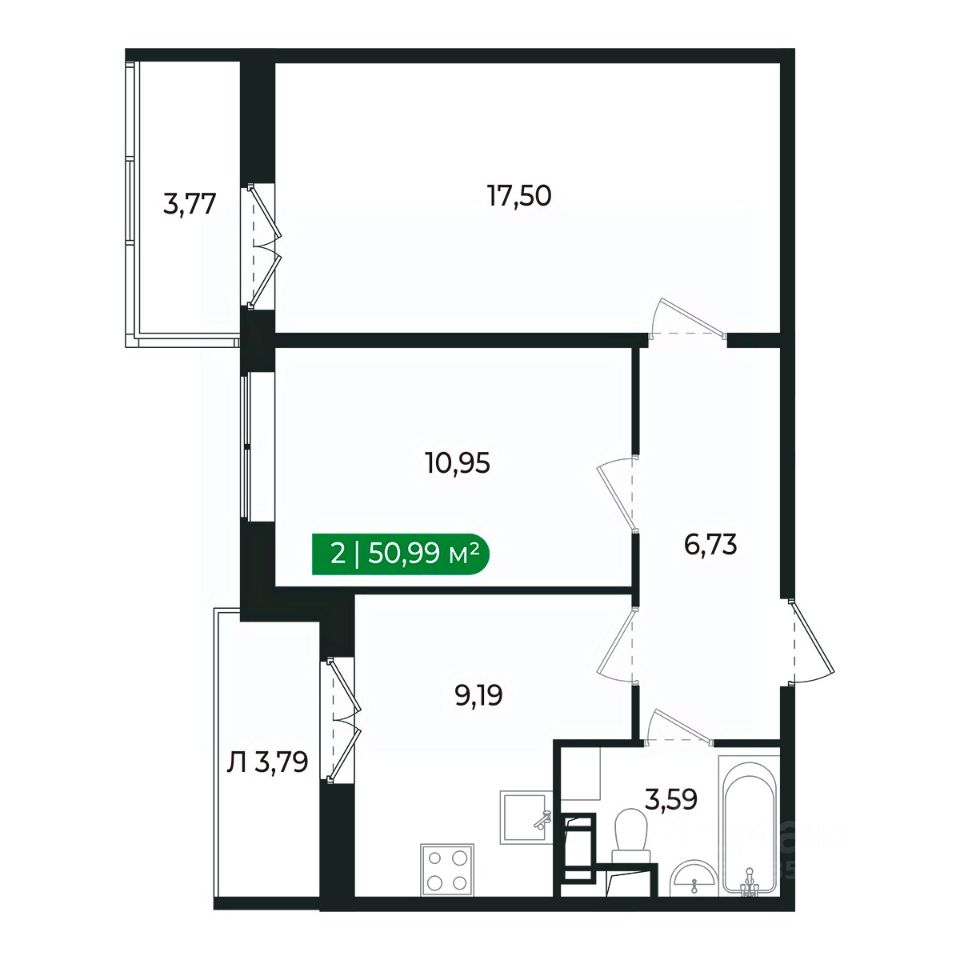 Напрямую продаётся 2 комнатная квартира 118 на 7 этаже (из 8) общей площадью 50,99 м2 в III очереди в жилом комплексе Сертолово Парк от застройщика ГК Алгоритм.