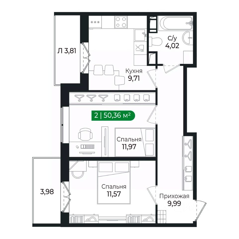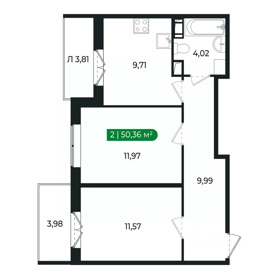 Напрямую продаётся 2 комнатная квартира 126 на 8 этаже (из 8) общей площадью 50,36 м2 в III очереди в жилом комплексе Сертолово Парк от застройщика ГК Алгоритм.