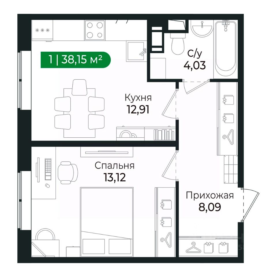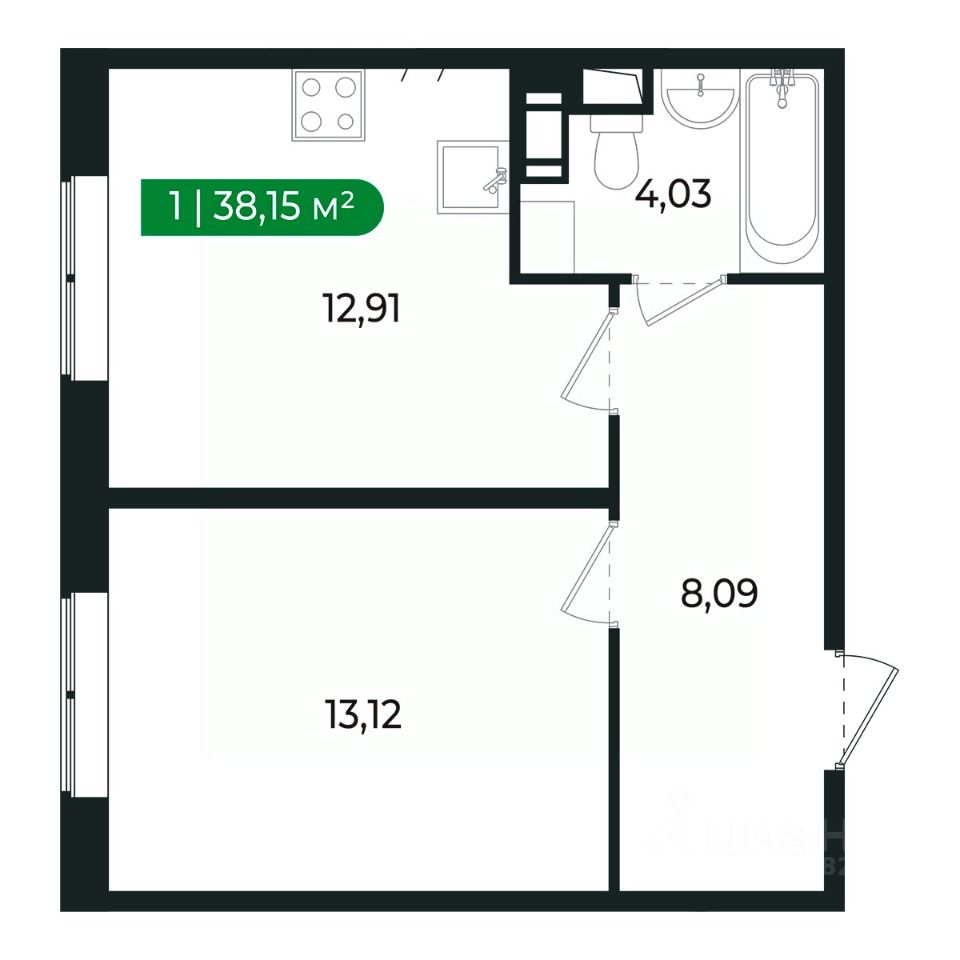 Напрямую продаётся 1 комнатная квартира 254 на 1 этаже (из 8) общей площадью 38,15 м2 в III очереди в жилом комплексе Сертолово Парк от застройщика ГК Алгоритм.