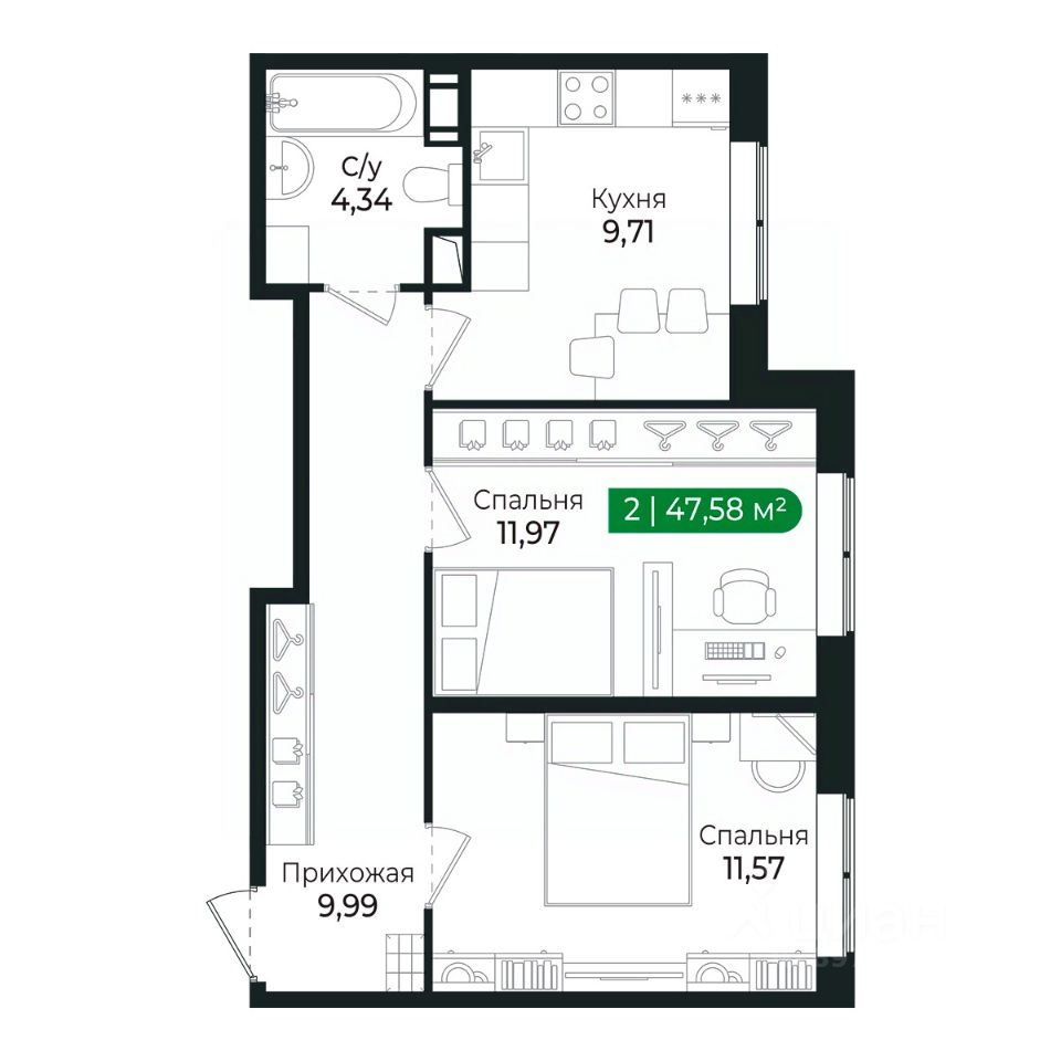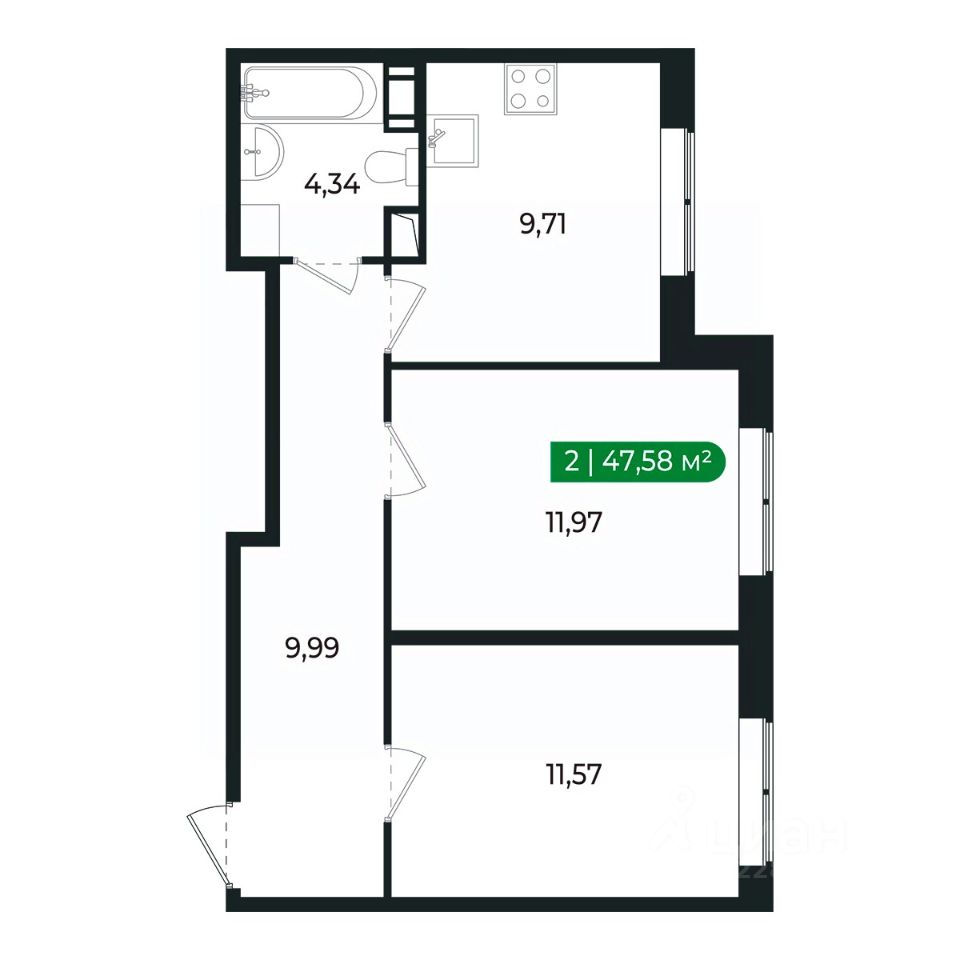 Напрямую продаётся 2 комнатная квартира 257 на 1 этаже (из 8) общей площадью 47,58 м2 в III очереди в жилом комплексе Сертолово Парк от застройщика ГК Алгоритм.