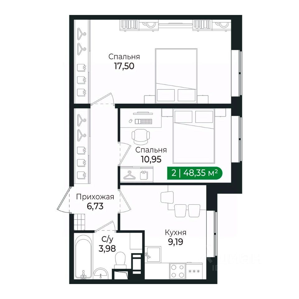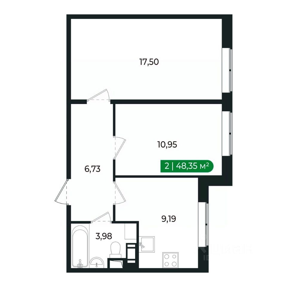 Напрямую продаётся  2 комнатная квартира  258 на 1 этаже (из 8) общей площадью 48,35 м2 в III очереди в жилом комплексе Сертолово Парк от застройщика ГК Алгоритм.