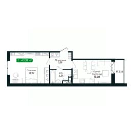 Напрямую продаётся 1 комнатная квартира 261 на 2 этаже (из 8) общей площадью 43,38 м2 в III очереди в жилом комплексе Сертолово Парк от застройщика ГК Алгоритм.