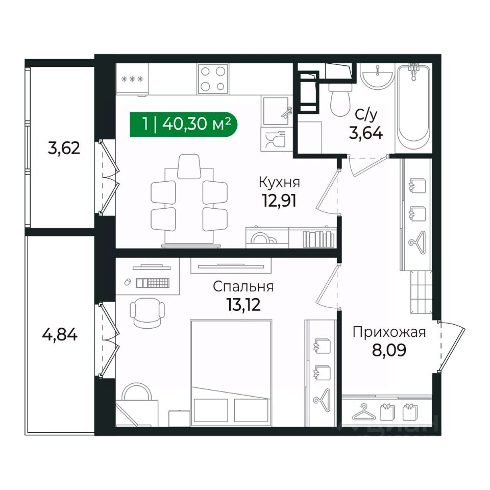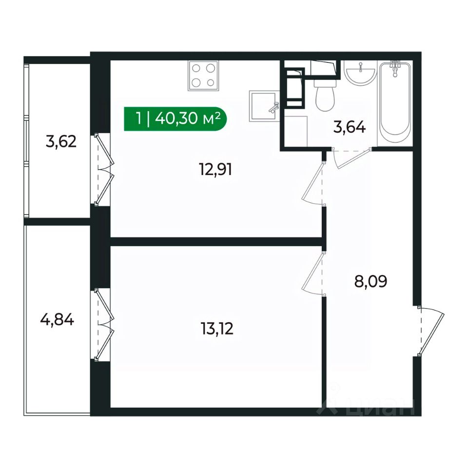 Напрямую продаётся 1 комнатная квартира 281 на 5 этаже (из 8) общей площадью 40,3 м2 в III очереди в жилом комплексе Сертолово Парк от застройщика ГК Алгоритм.