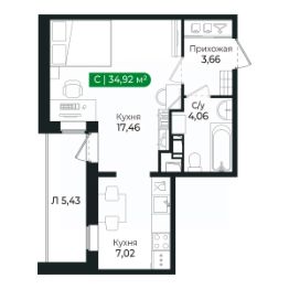 Напрямую продаётся квартира -студия 287 на 5 этаже (из 8) общей площадью 34,92 м2 в III очереди в жилом комплексе Сертолово Парк от застройщика ГК Алгоритм.