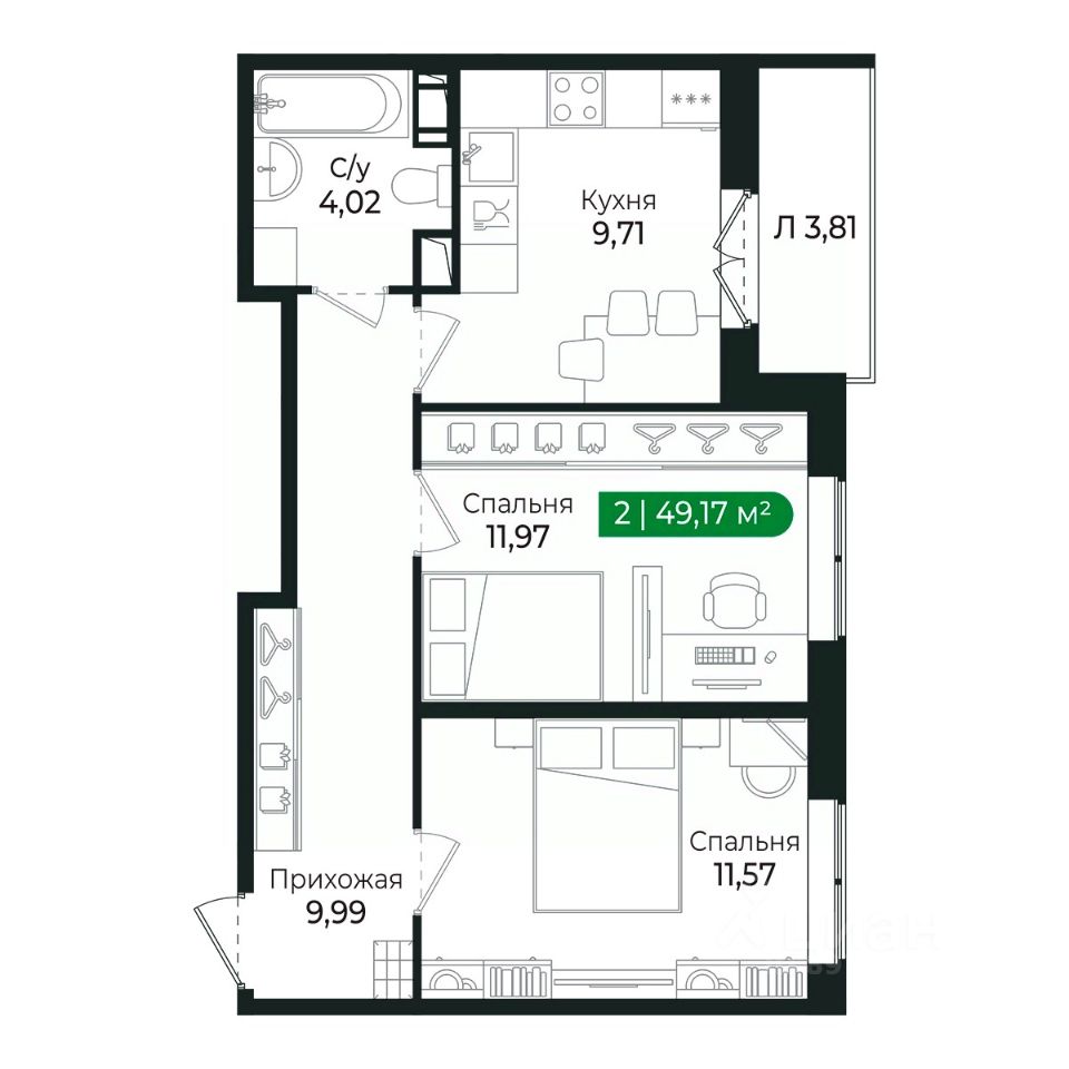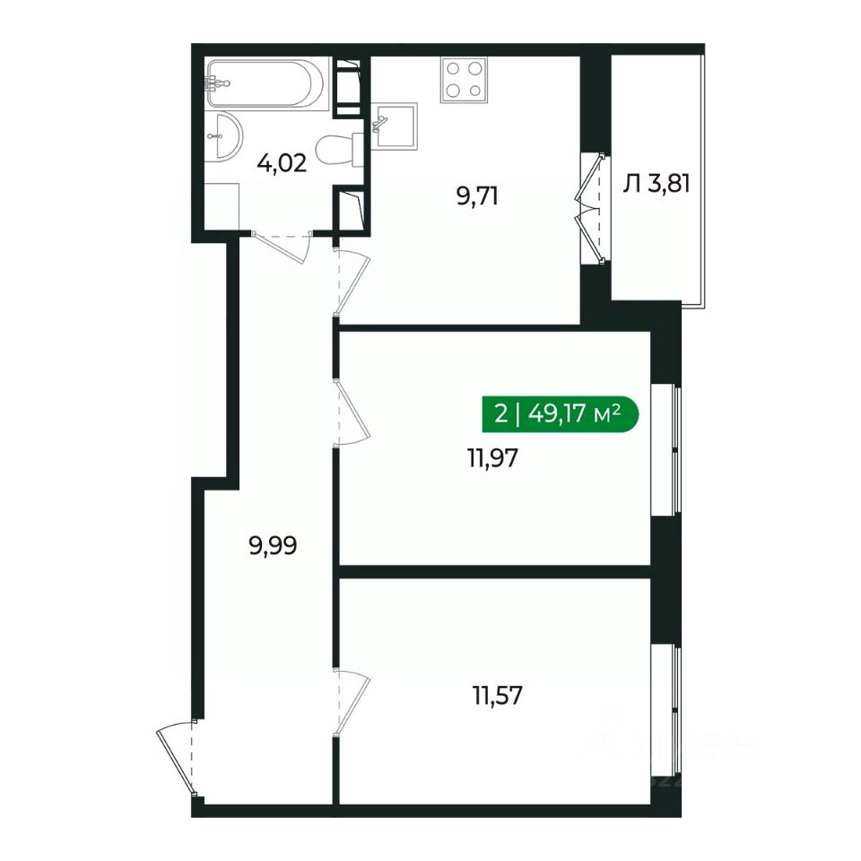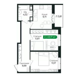 Напрямую продаётся 2 комнатная квартира 291 на 6 этаже (из 8) общей площадью 49,17 м2 в III очереди в жилом комплексе Сертолово Парк от застройщика ГК Алгоритм.