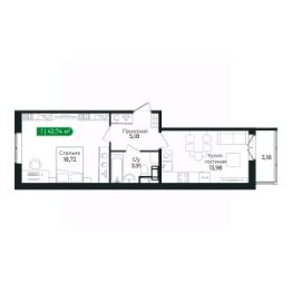 Напрямую продаётся 1 комнатная квартира 296 на 7 этаже (из 8) общей площадью 42,74 м2 в III очереди в жилом комплексе Сертолово Парк от застройщика ГК Алгоритм.
