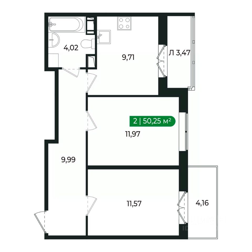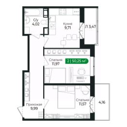 Напрямую продаётся 2 комнатная квартира 298 на 7 этаже (из 8) общей площадью 50,25 м2 в III очереди в жилом комплексе Сертолово Парк от застройщика ГК Алгоритм.