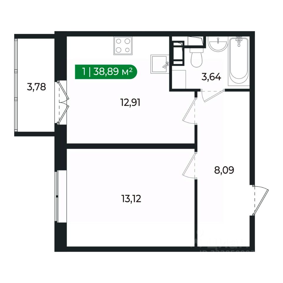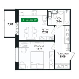 Напрямую продаётся 1 комнатная квартира 302 на 8 этаже (из 8) общей площадью 38,89 м2 в III очереди в жилом комплексе Сертолово Парк от застройщика ГК Алгоритм.