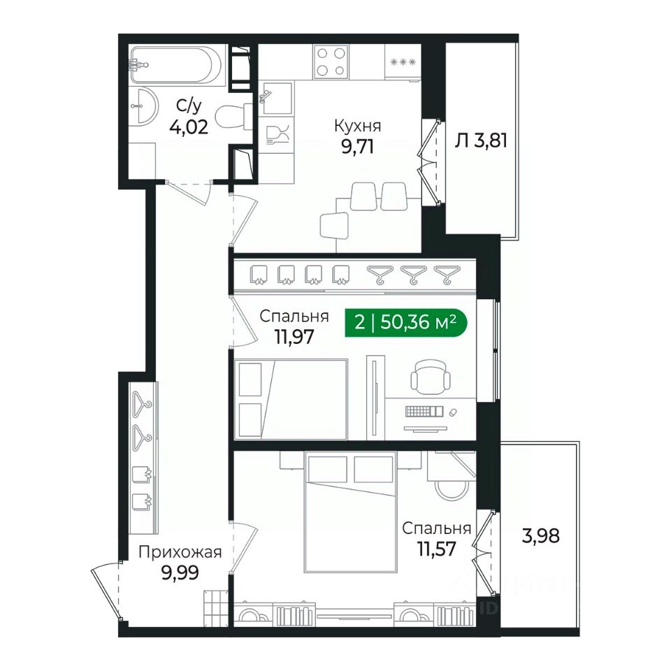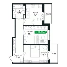Напрямую продаётся 2 комнатная квартира 305 на 8 этаже (из 8) общей площадью 50,36 м2 в III очереди в жилом комплексе Сертолово Парк от застройщика ГК Алгоритм.