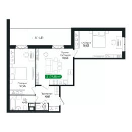 Напрямую продаётся 2 комнатная квартира 307 на 8 этаже (из 8) общей площадью 74,55 м2 в III очереди в жилом комплексе Сертолово Парк от застройщика ГК Алгоритм.