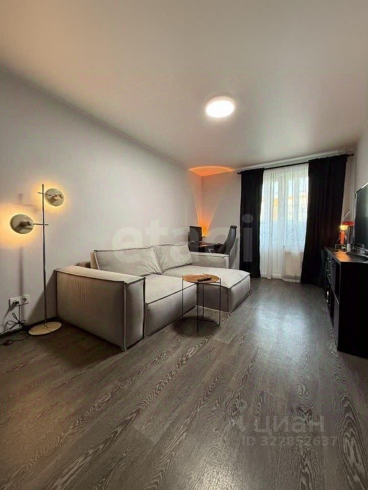 Ремонт: современный, выполнен в спокойных светлых тонах, что визуально расширяет пространство и наполняет квартиру естественным светом. Контраст создают тёмные двери и напольное покрытие — стильное сочетание классики и уюта.