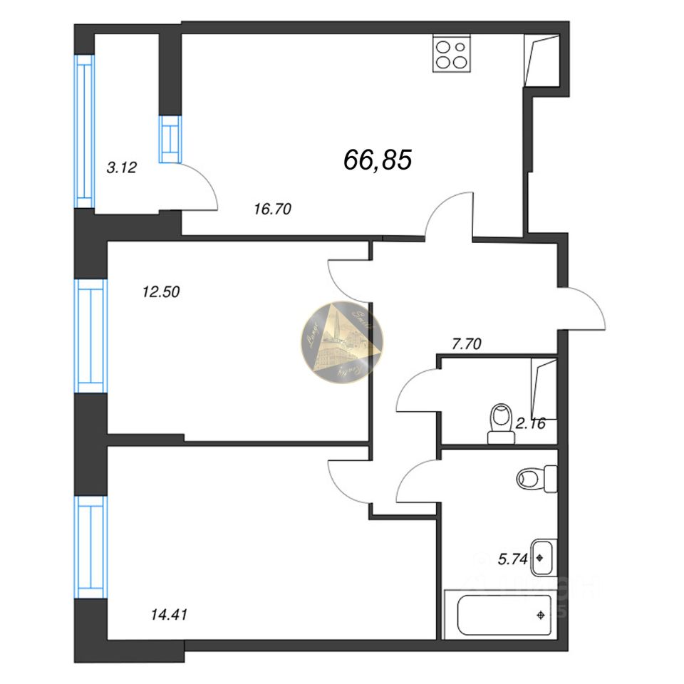 - Общая площадь квартиры 66.85 м2