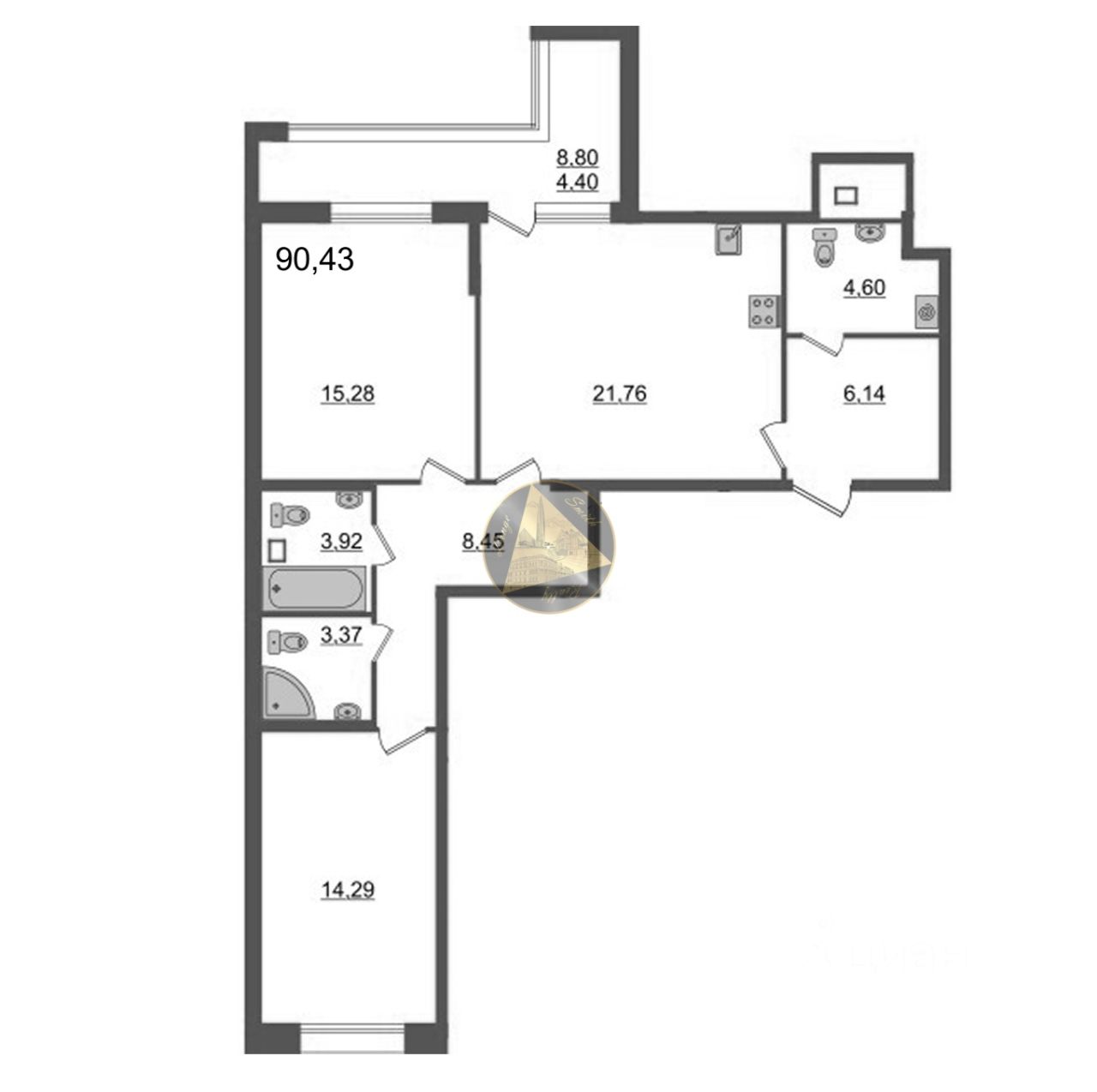 - Общая площадь квартиры 90.43 м2