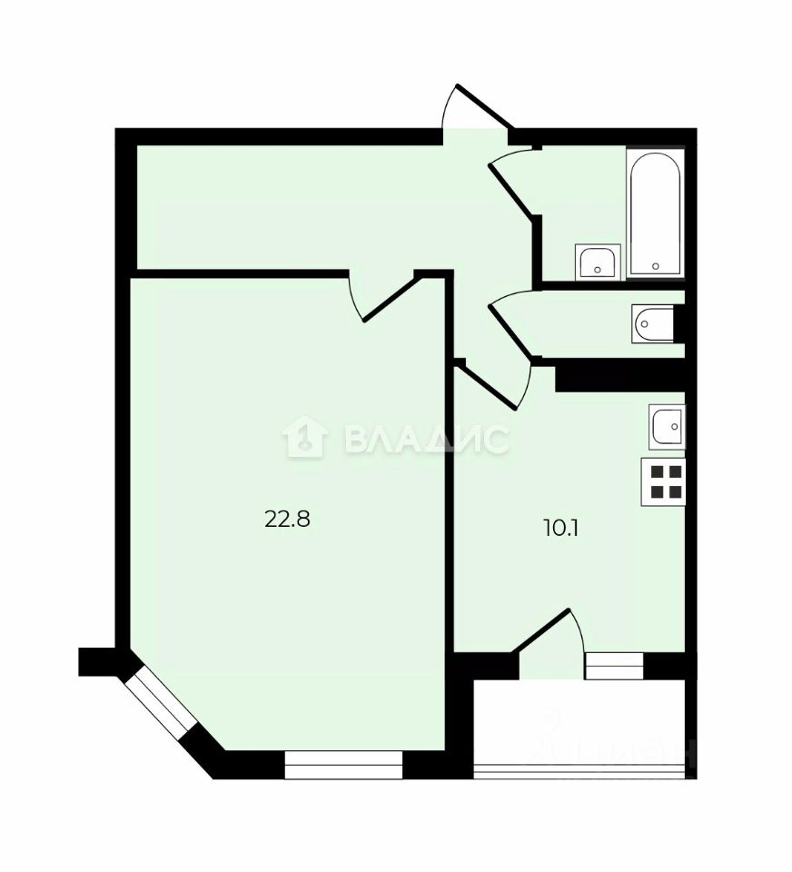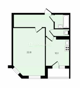 - Общая площадь 48 м кв., из которых 22,8 м кв. - жилая