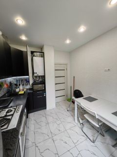 В квартире сделан качественный евро ремонт, вся электрика и водные коммуникации заменены. Комната при необходимости разделяется на две зоны при помощи специальной шторы, которая перемещается по всей ширине и в любой момент фиксируется в удобном для вас месте. В качестве напольного покрытия в комнате используется влагостойкий и ударопрочный кварцвинил. В комнате остаётся Стенка с большим количеством отсеков для хранения и удобным пространством для размещения телевизора, диван, компьютерный стол.