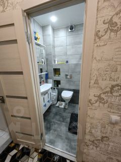 Санузел совмещённый. Стены и пол выполнены из керамогранита, установлен тёплый пол.