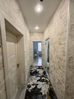 Напольное покрытие в прихожей и коридоре - керамогранит. В прихожей установлен встроенный шкаф с большим количеством отсеков для хранения.