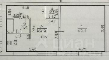 Площадь квартиры 56,2 кв.м. Большая спальня 26,1 кв.м. Кухня-гостиная 23,6 кв.м. Совмещенный санузел 4,4 кв.м. Оборудованная гардеробная. Проект перепланировки официально согласован.