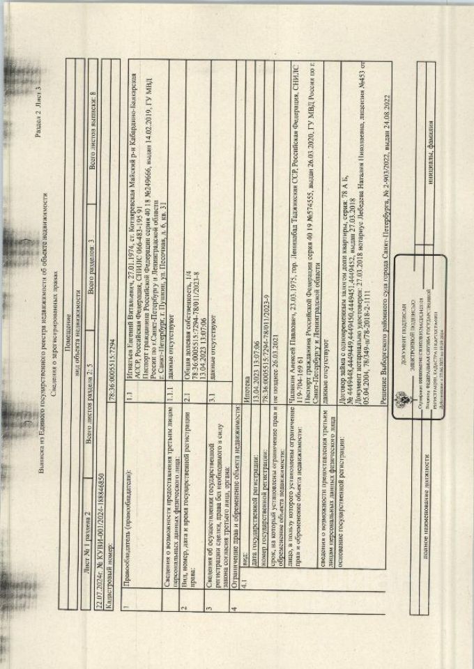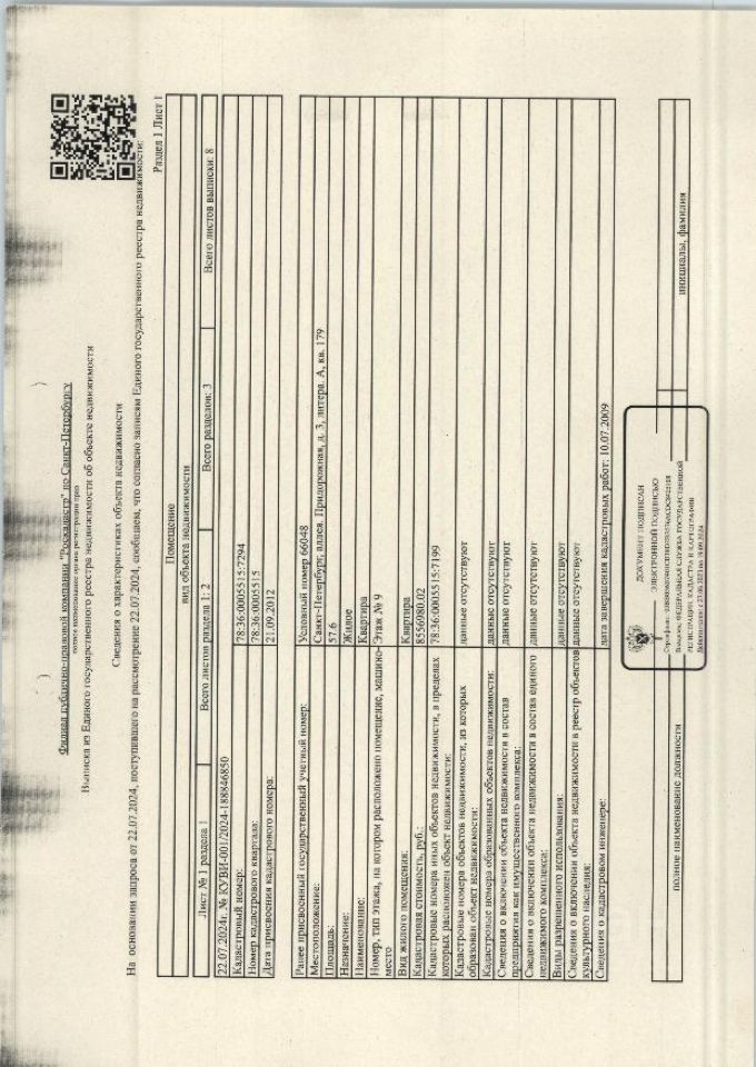 3/4 долей в квартире, расположенной по адресу: Санкт-Петербург, Придорожная аллея, д. 3, лит А , кв. 179 общ. пл. 57,6 кв. м., кад. номер 78:36:0005515:7294