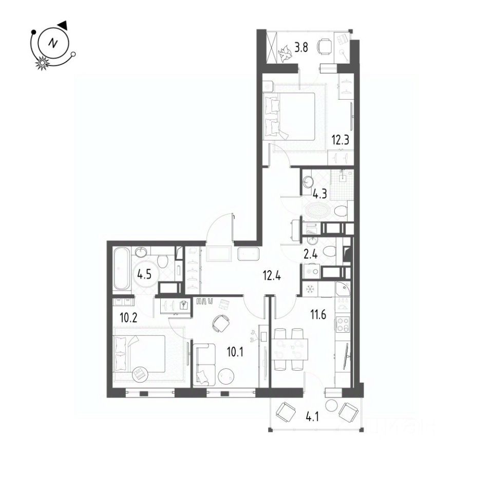 Квартира без отделки, что дает возможность реализовать свои дизайнерские фантазии и создать интерьер на свой вкус.