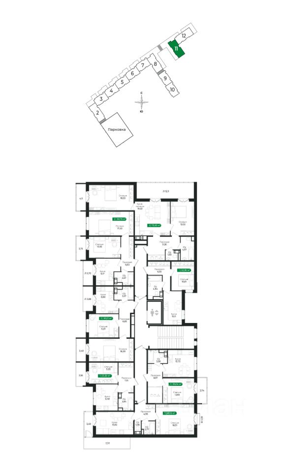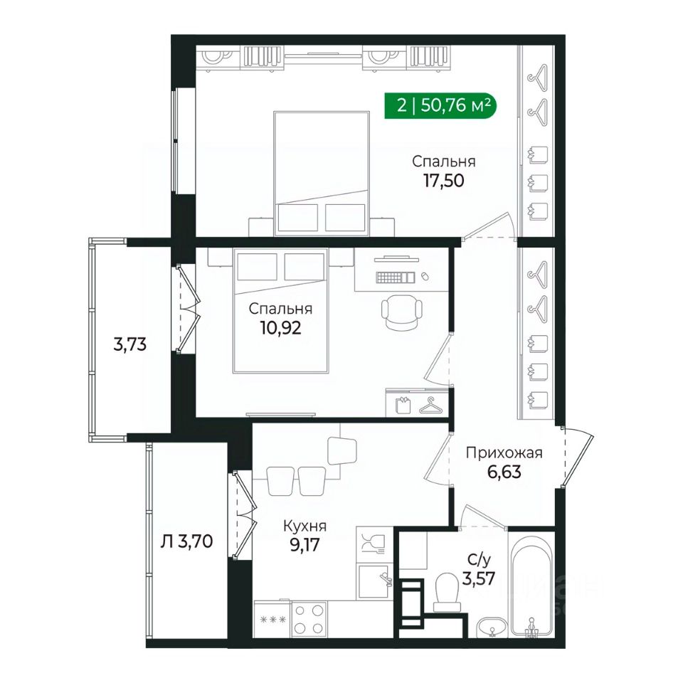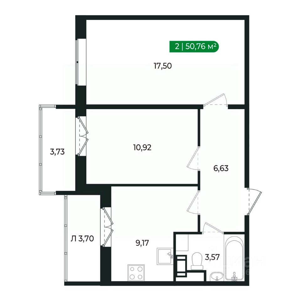Напрямую продаётся уютная 2-комнатная квартира 354 общей площадью 50,76 м2 во II очереди в жилом комплексе Сертолово Парк от застройщика ГК Алгоритм.